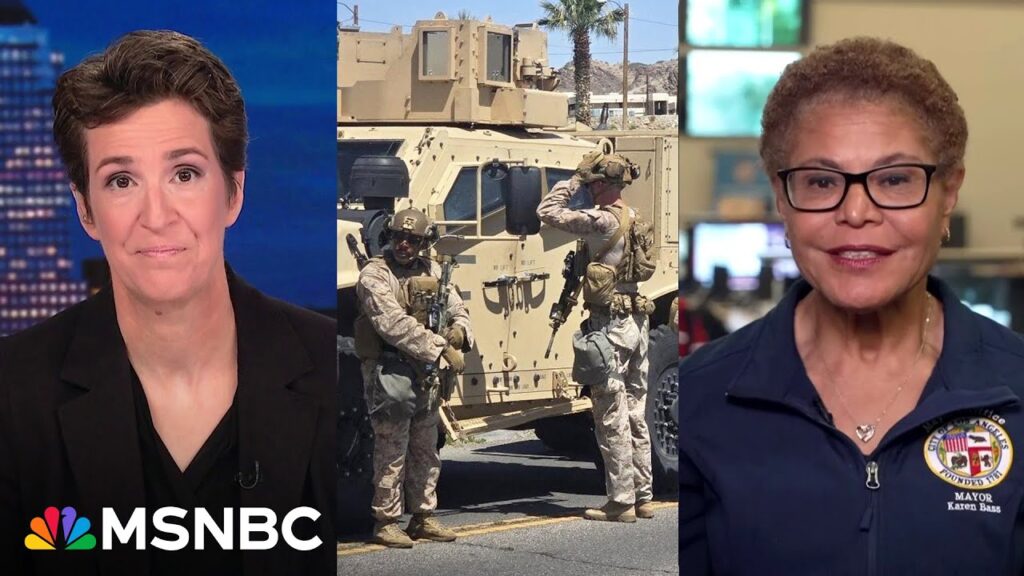 Los Angeles Mayor Karen Bass talks with Rachel Maddow about how Donald Trump made the situation in her city worse by sending National Guard troop and the Marines to confront immigration protestors who had been peaceful prior to Trump’s provocation.