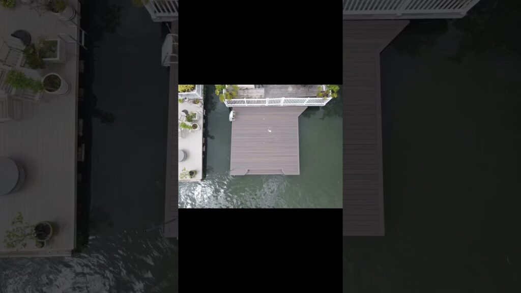 Super clean composite decking, 20’ x 20’ party deck with a few customizations including a 10’ light pole, a retractable pole for tying floaties up with and a 3’ extension for his boat to pull up to.